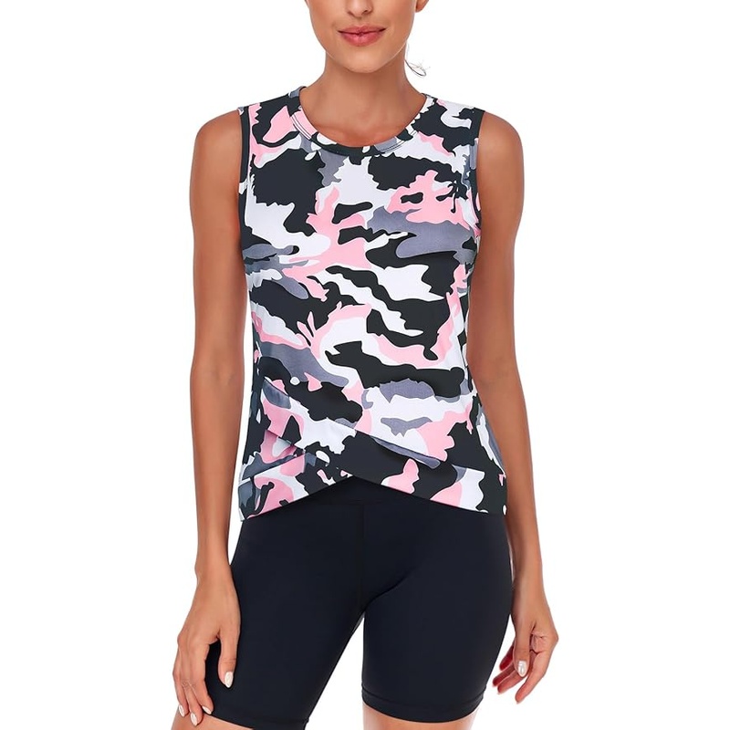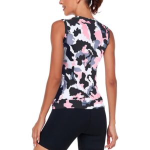 Akiooue Women’s Workout Tank Top Sleeveless Crop Vest – Light Pink Camouflage